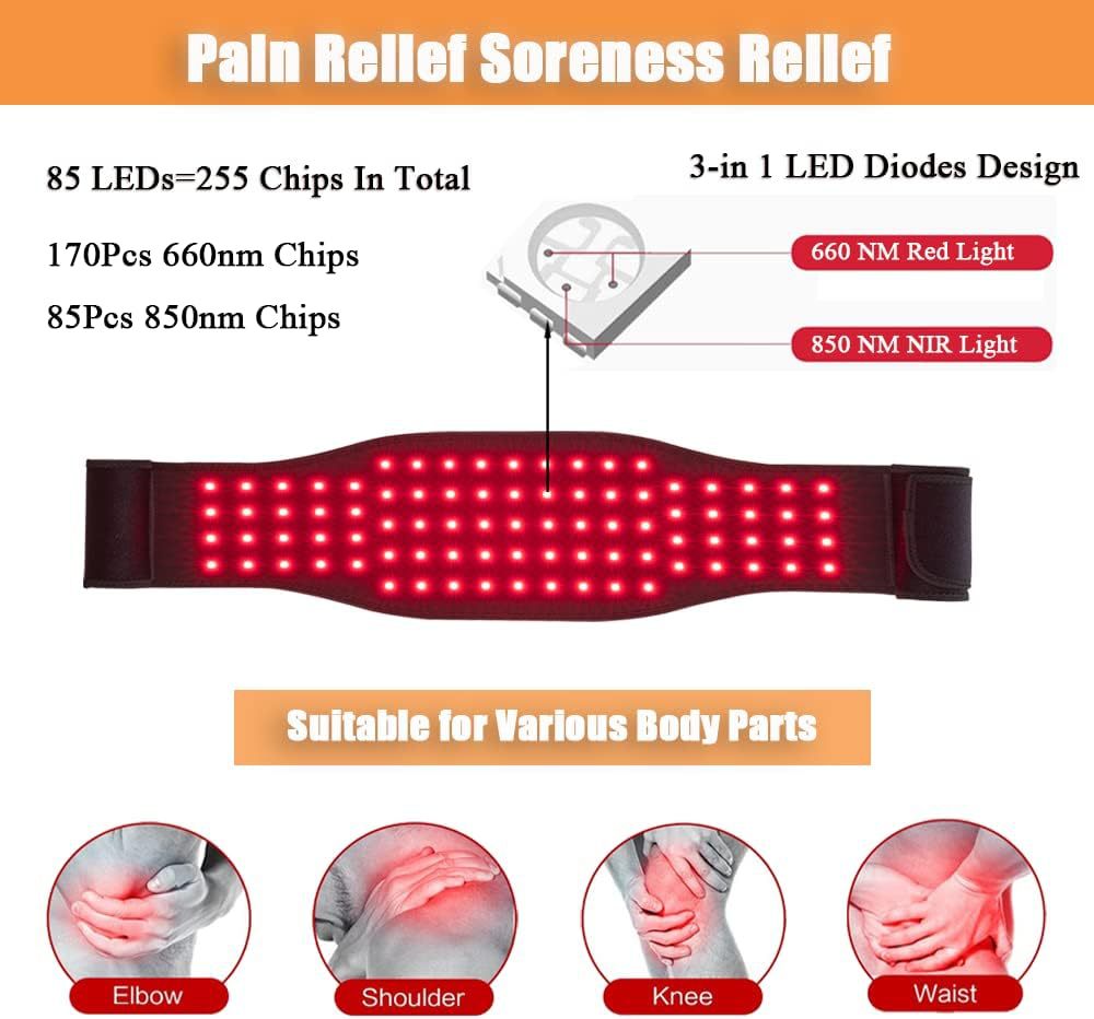 Red Light Infrared Physical Therapy Belt Waist Pain Relief Heat
